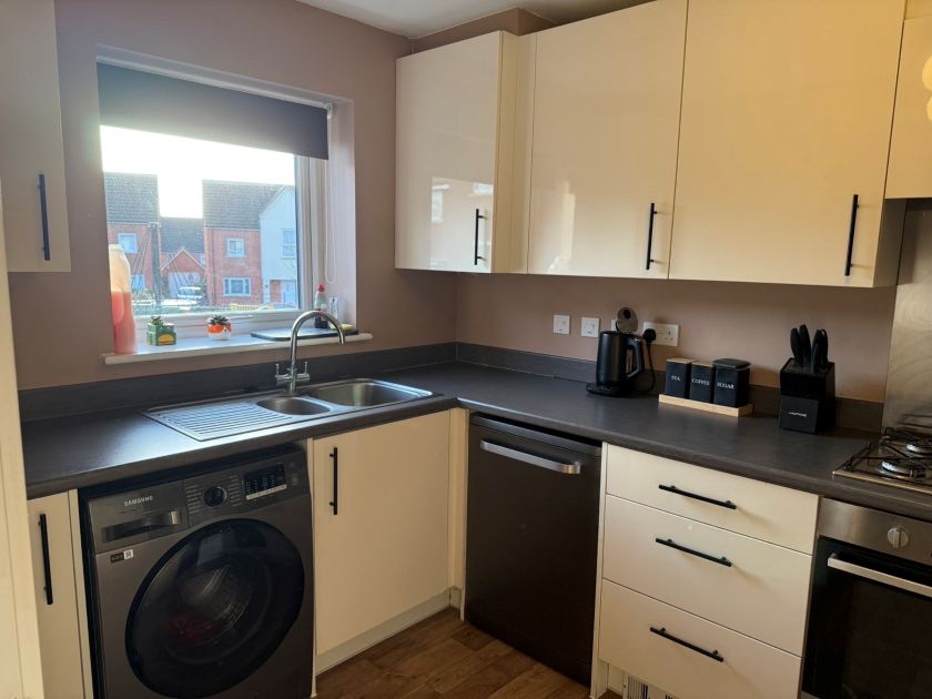 This lovely two-bedroom home offers a comfortable lounge, along with a modern kitchen/dining space fitted with an integrated oven, electric hob, and extractor hood. There is a private garden, perfect for enjoying some outdoor time. The home also comes with two allocated parking spaces. Upstairs, there are two great sized bedrooms and a modern family bathroom.