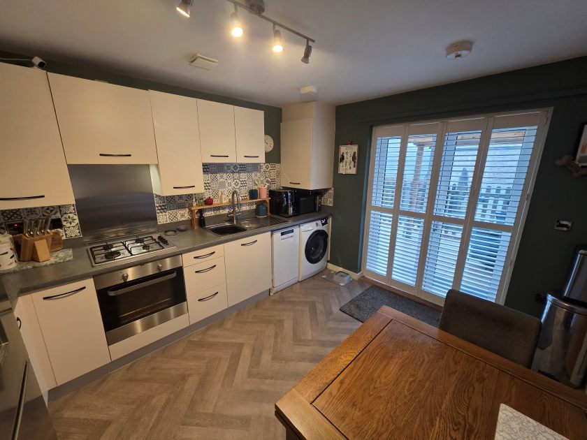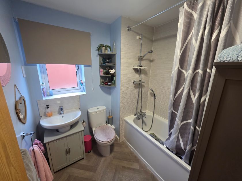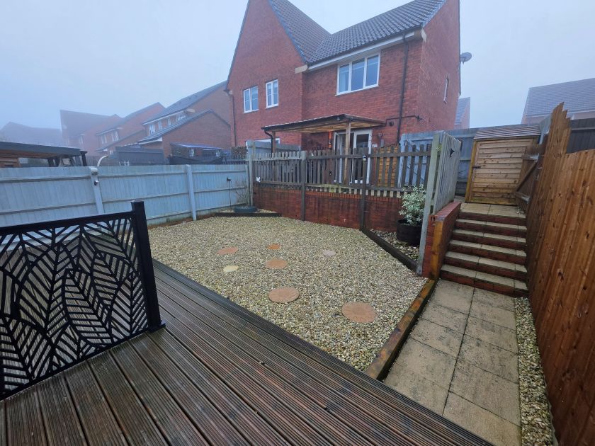 This well-presented two-bedroom home features a bright and spacious lounge, complemented by a modern kitchen/dining area complete with an integrated oven, electric hob, and extractor hood. To the rear, the private garden offers a charming patio and decking area. This home also benefits from two allocated parking spaces to the front. Upstairs, there are two generously sized bedrooms and a stylish family bathroom.